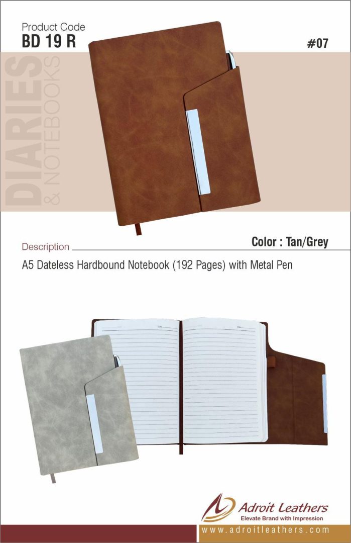 A5 Dateless Hardbound Notebook (192 Pages) with Metal Pen
